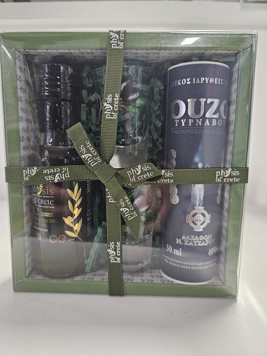 gift box olive oil 60ml ouzo 50ml 4x spreads 40gr