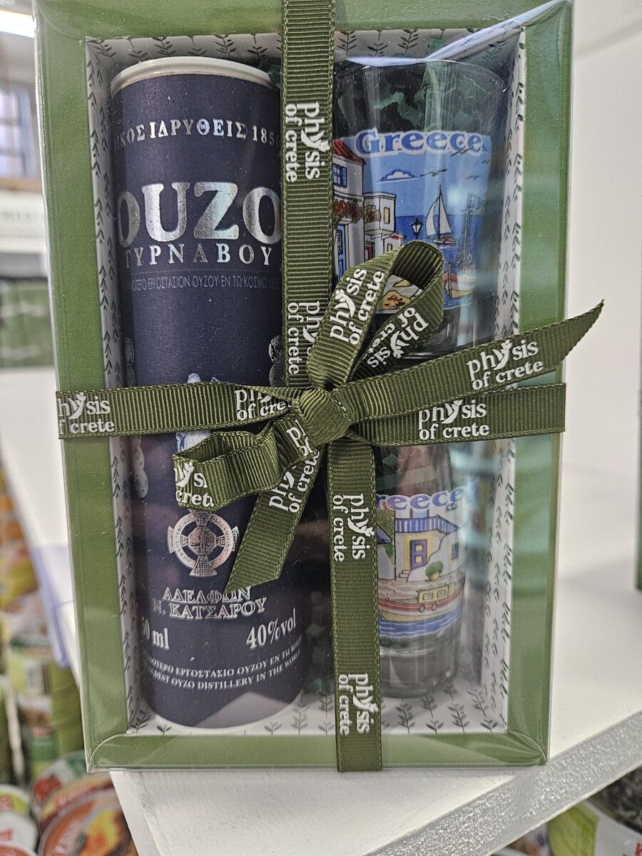 gift box ouzo cylinder 50ml 2xglasses quantity
