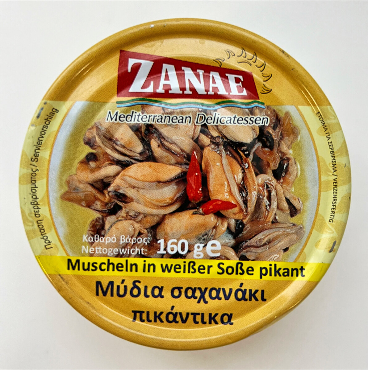 Mussels, vegetable, oil, onion, peeled tomatoes, peppers, lemon juice, carrots, parsley, chilli pepper, salt, sugar, spices, potato starch, guar gum, xanthan gum