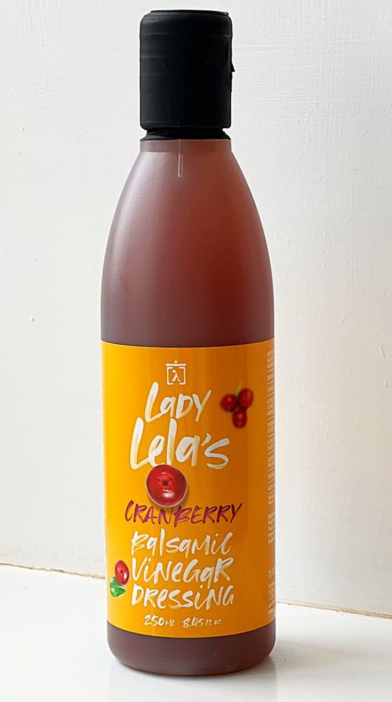 Balsamic vinegar with cranberries. It is used in food and salads, giving them a distinct flavor. Thanks to its strong taste, it often eliminates the need for olive oil in salads.